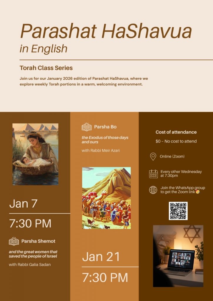Join us for the second session in our bi-monthly English Parashat HaShavua series, featuring Parsha Bo, led by Beit Daniel’s Rabbi Meir Azari. This parsha brings us to the dramatic climax of the Exodus story, exploring themes of freedom, faith, responsibility, and the power of collective memory.